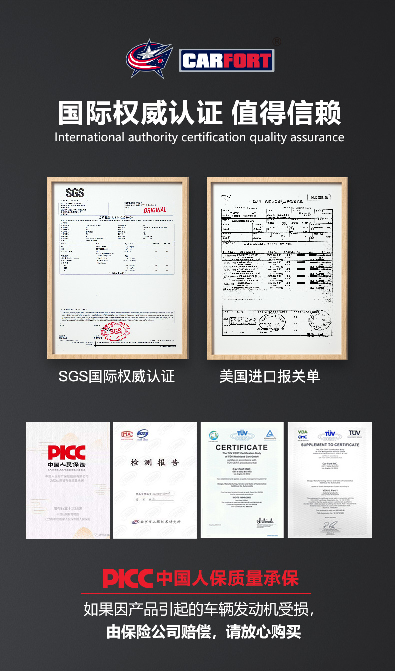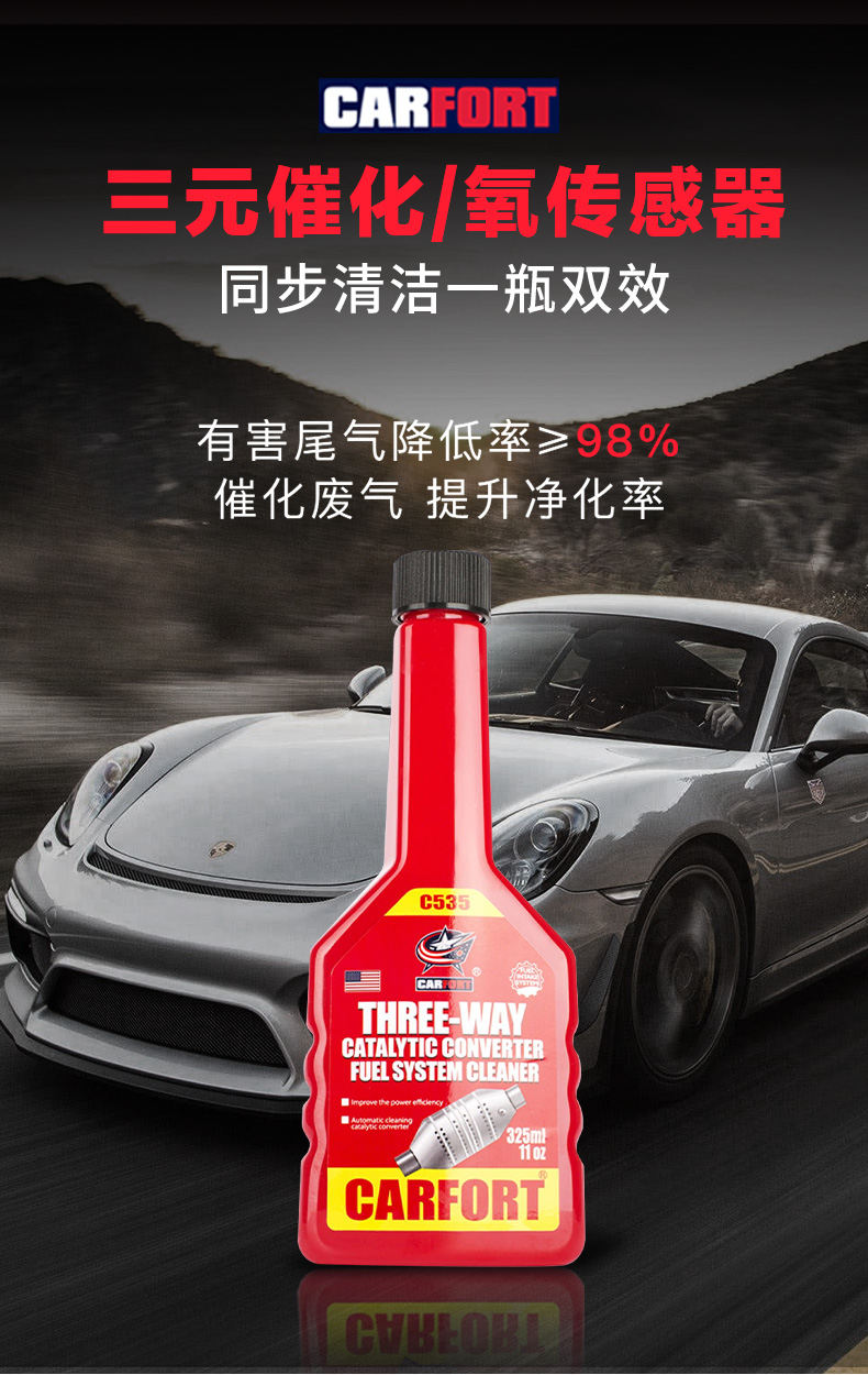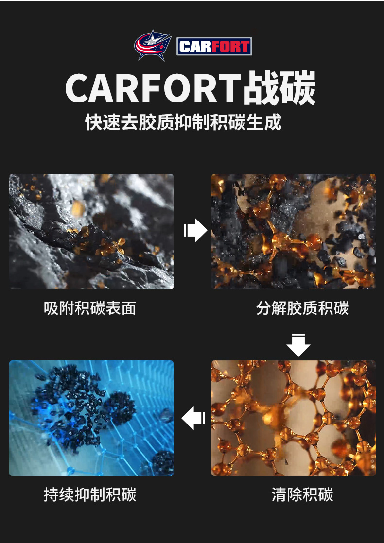 这款Carfort 战碳C521 燃油宝325mL,美国原装进口,经SGS国际权威认证,添加环保amino-terminated高分子闪溶材料,结合美国Carfort独有的第5代PEA溶碳技术,高纯度PEA含量高达50%,喷油嘴+燃烧室+火花塞+进气门全面不遗漏,快速分解积碳及去胶质抑制积碳生成,乳化油箱积水提升燃烧效率,除碳抑碳不伤车,全方位的清洗持久保持燃油系统的清洁。
