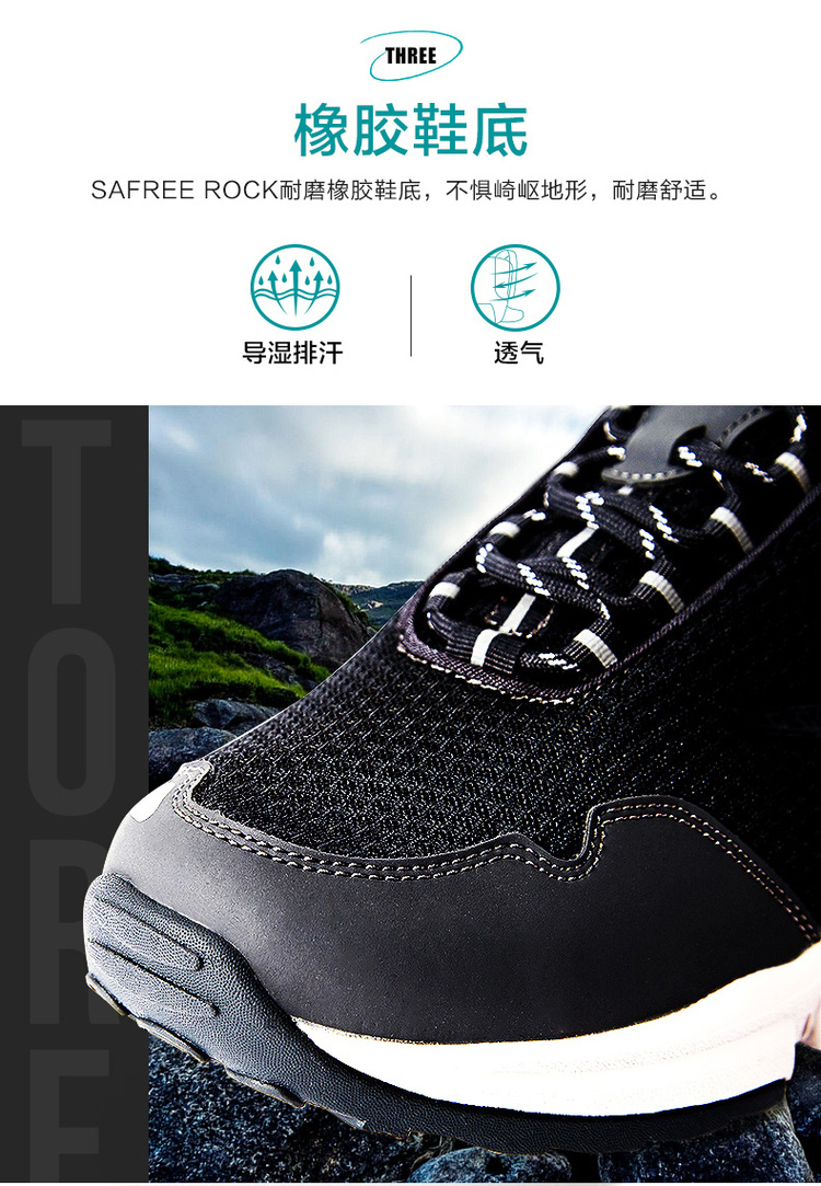 这款探路者的徒步鞋,是其中端旅行系列,采用专业户外SAFree Rock湿地防滑大底,是探路者自己研发的户外安全防护科技,模仿林蛙脚蹼及独特的吸盘造型,使用专业防滑橡胶,提升鞋底橡胶粘性,据称摩擦系数比普通橡胶提升30%,并能及时排出雨雪及泥水,提升抓地性能。