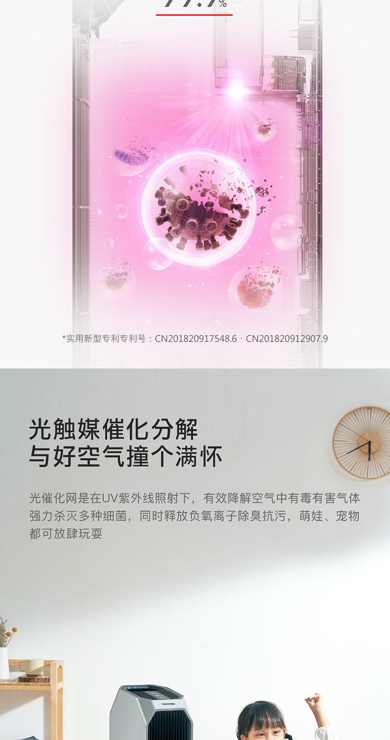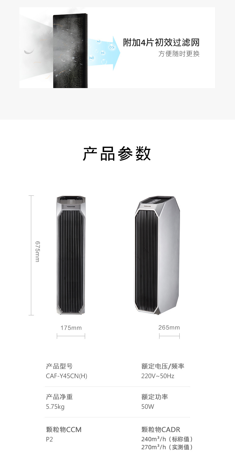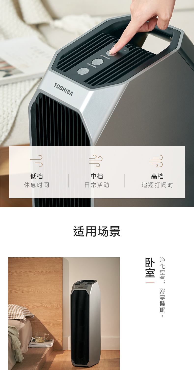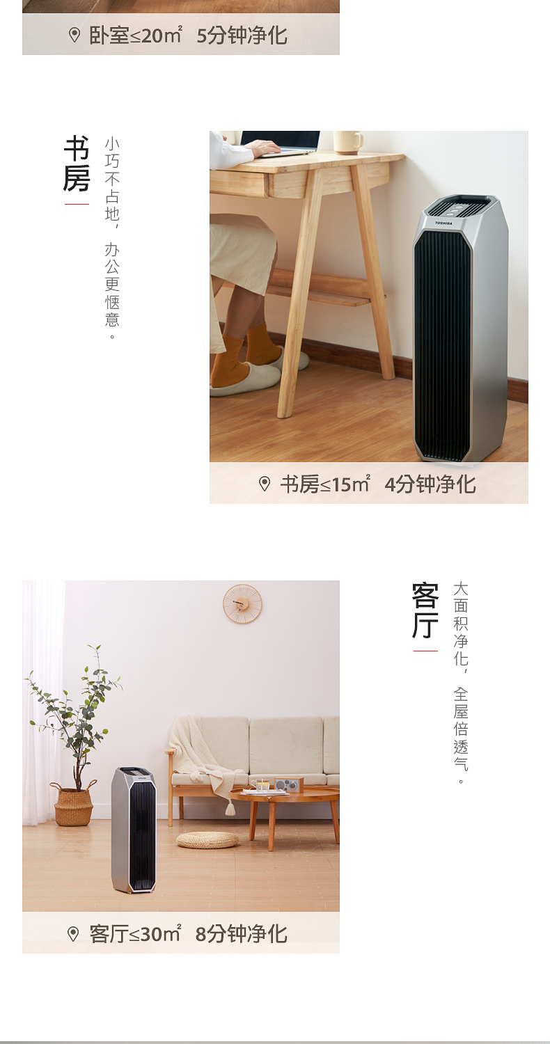 东芝海外同款 CAF-Y45CN(H) 空气净化器!按照欧盟EN1 882标准,对0.3μm粒径微粒过滤效率高于99.97%。