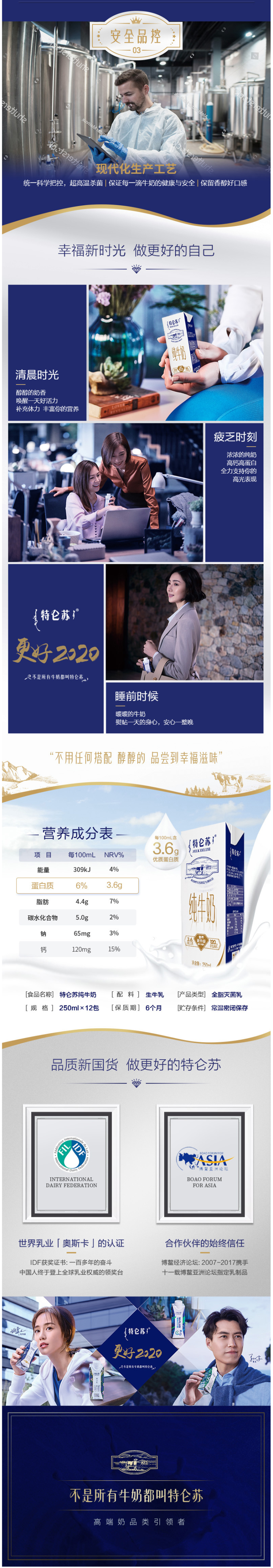 特仑苏牛奶是蒙牛旗下的高端牛奶品牌,其奶源来北纬40°黄金奶源维度带特仑苏专属牧场。