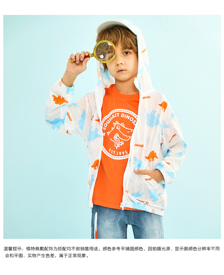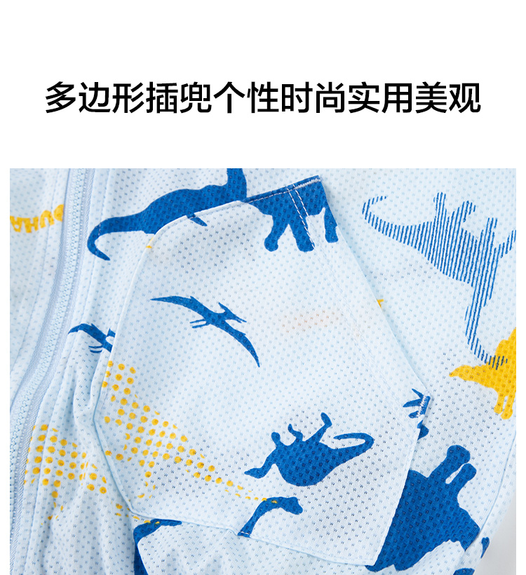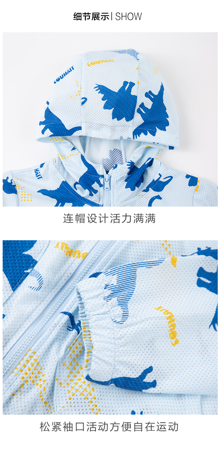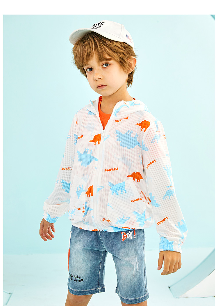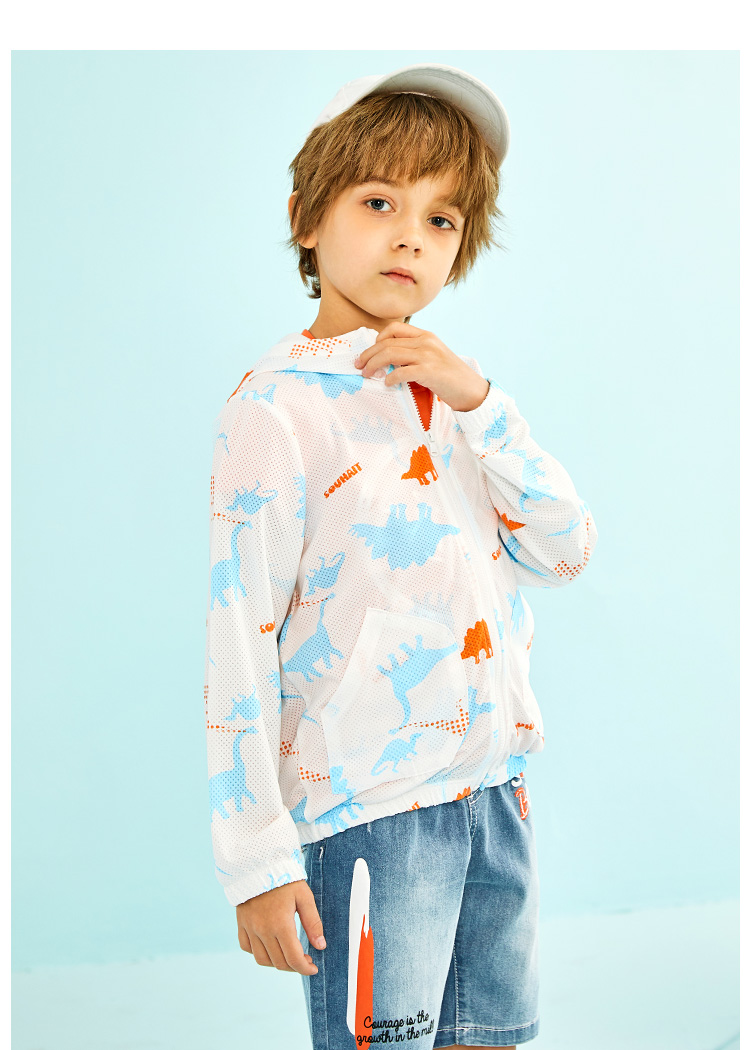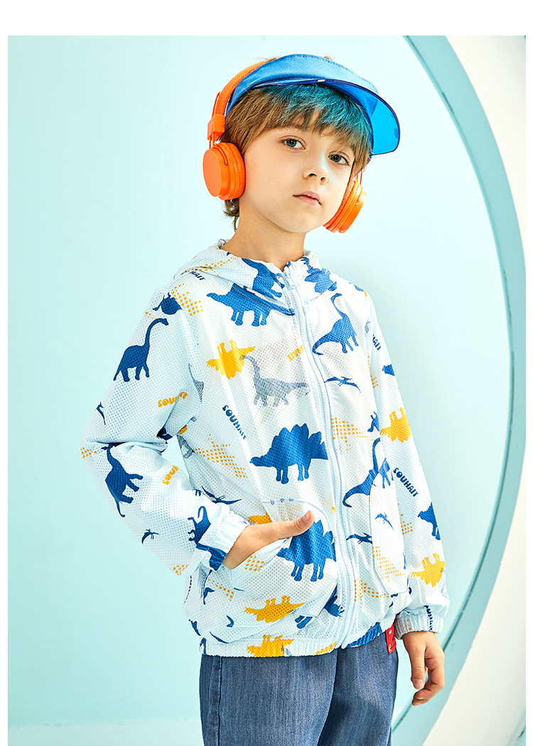 水孩儿 男/女童轻薄防晒皮肤衣外套,蝴蝶网眼布,轻薄柔软,清爽透气,不易粘身;连帽设计,活力满满,松紧袖口,活动方便,自在运动;弹力下摆,张弛有度,松紧适宜。多边形插兜个性时尚,实用美观,清爽色彩太适合夏天了。 水孩儿童装品牌,1995年创立于中国北京。