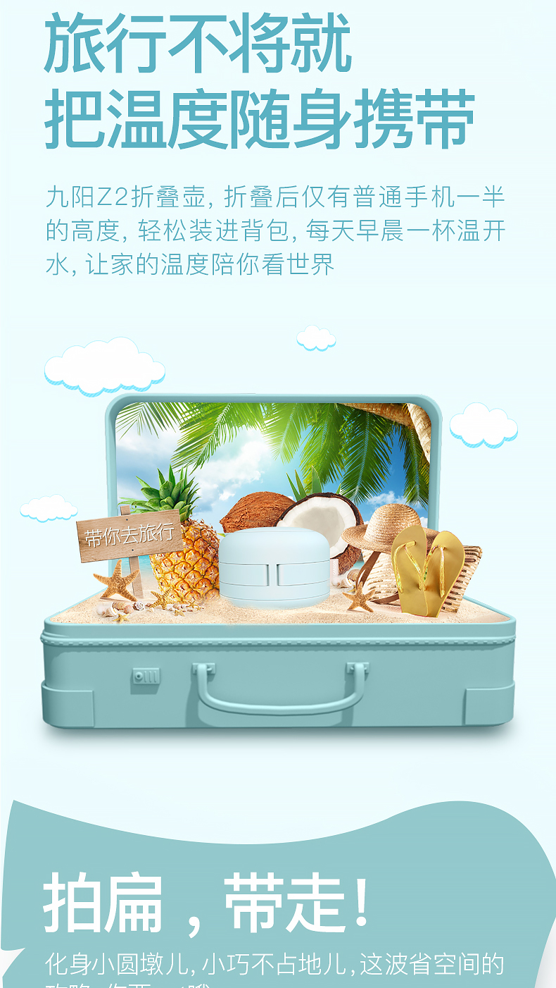 天猫九阳厨房电器旗舰店159元,可领80元优惠券,实付79元到手,下单就送收纳袋+折叠杯。壶和杯子都有了,旅游出差必备。