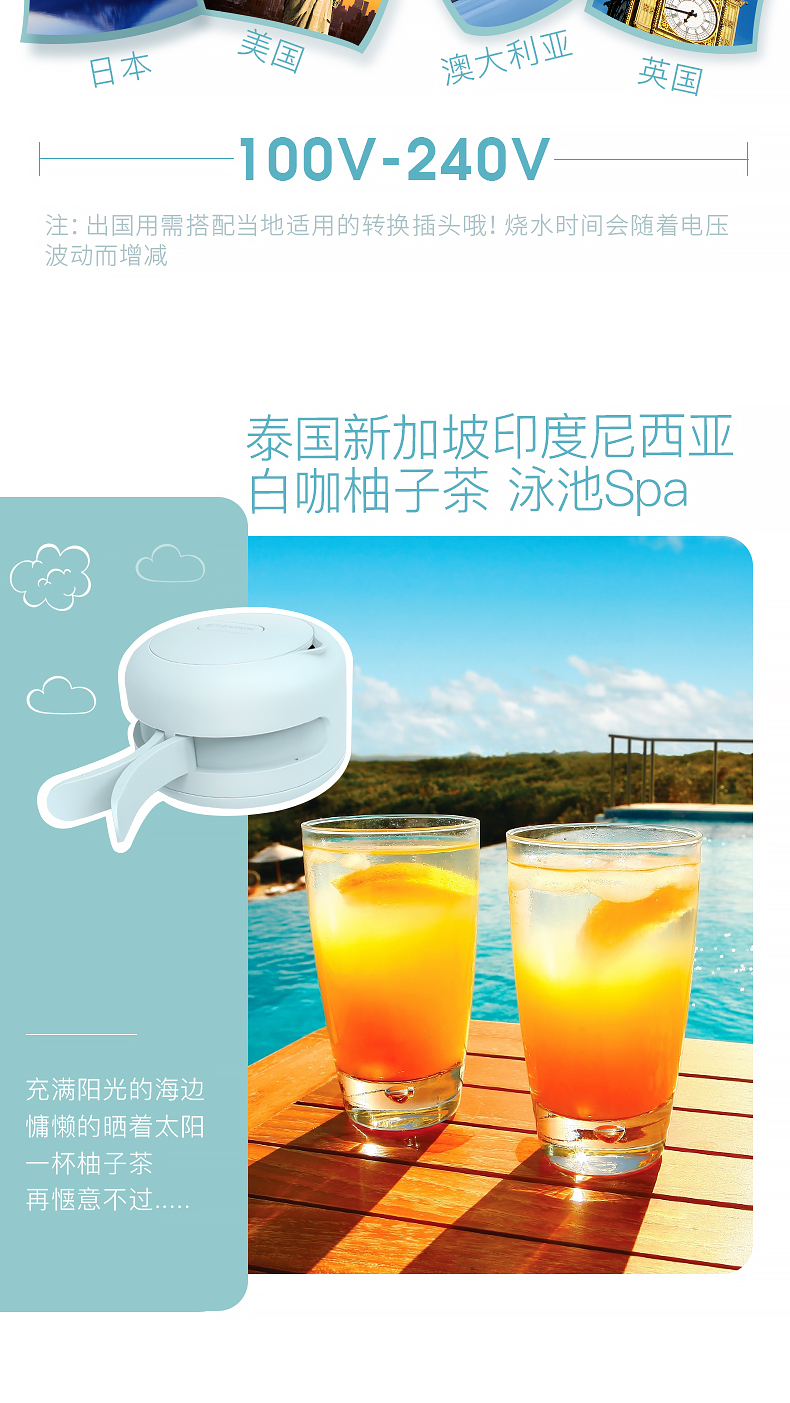 出门在外,对酒店的热水壶实在不放心,想喝口热水又太麻烦,还是自带热水壶更方便,更何况多数国外地区的酒店是不提供热水壶的,自带方便又实用,冲奶、泡茶、泡面等等,旅行必备神器。