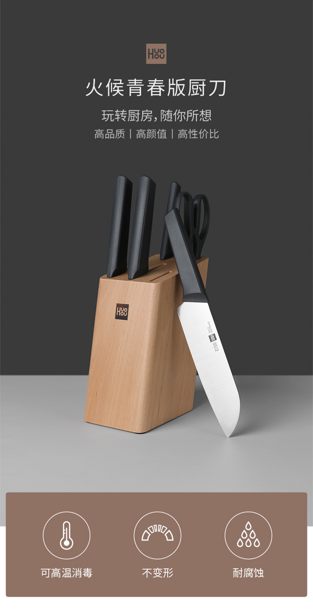 这款火候刀具由小米生态链企业生产,刀具全部采用30Cr13不锈钢,这属于马氏体不锈钢,具有较高的强度、优良的耐腐蚀性和耐磨性,是制作家用厨房刀具最适宜的材料之一。并且这款刀具的钢材用量,是普通刀具的1.5倍,整体更扎实,有质感,品质也会更高一层。