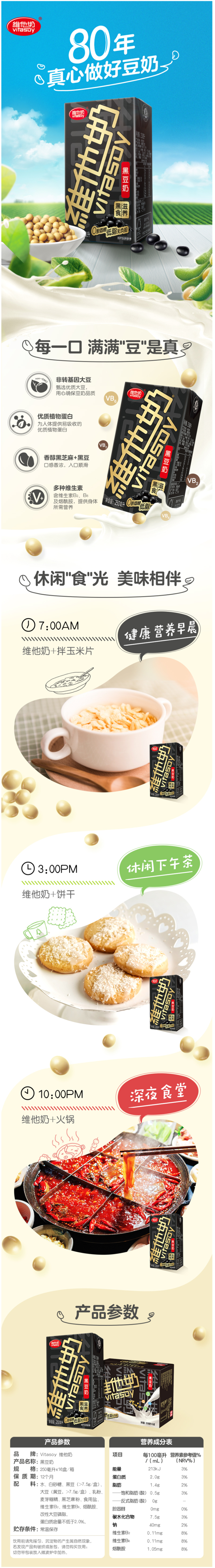香港维他奶集团出品。严选非转基因黑大豆+黑芝麻为原料,破壁提纯技术萃取,醇黑营养,含有优质植物蛋白和不饱和脂肪酸,0胆固醇,口感香浓豆香浓郁。