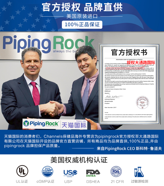 PipingRock是来自美国的保健品牌「官网地址」,和自然之宝、普丽普莱一样,都是美国最大的膳食营养补剂公司NBTY旗下品牌。
