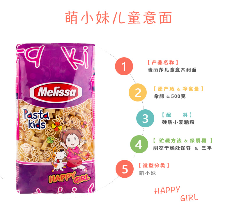 这款麦丽莎意大利面是专为儿童设计,把面条做成卡通造型,希腊原装进口,以杜兰小麦为原料,这个品种属于硬质小麦,具有高密度、高蛋白质、高筋度等特点,做成的意大利面呈金黄色,耐煮、面质软弹,口感劲道爽滑。
