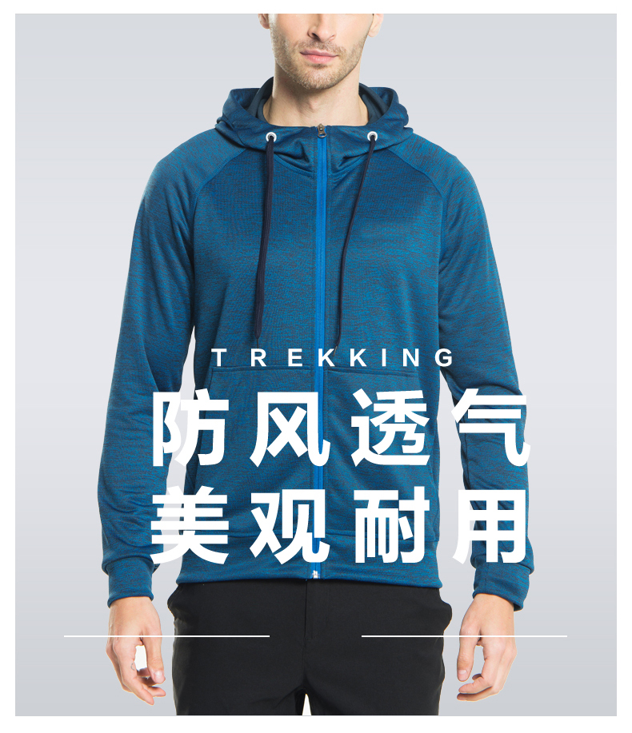 这款君羽休闲连帽卫衣是18年的春季款,属于旅行系列的针织外套,采用95%聚酯纤维混5%弹力纤维的混纺面料,质地轻薄有弹性,舒适凉爽透气,适合初秋、或者早晨外出运动时穿;