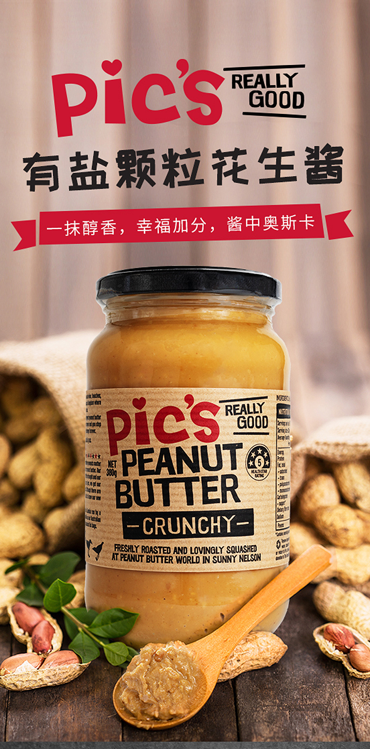 ▲Pics品牌来自新西兰,新西兰几乎是人手一瓶Pics的花生酱,有着世界上最好吃的花生酱之称,在新西兰本土的销量遥遥领先于其他品牌,备受消费者的青睐。
