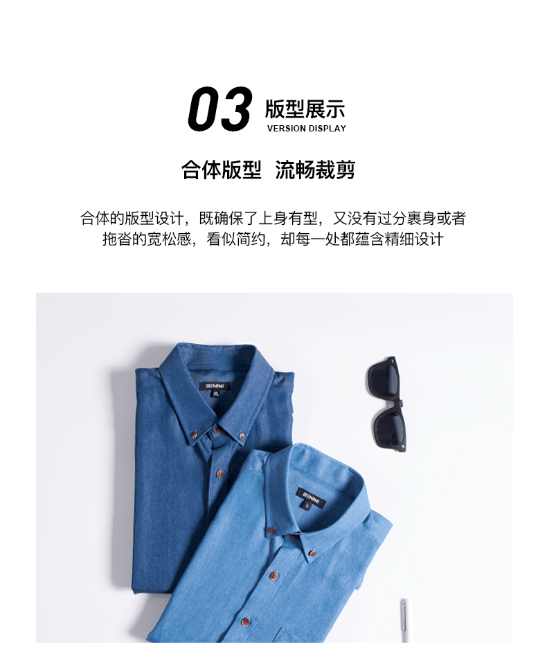 • 本米 日本天丝面料 男士牛仔长袖衬衣 爽滑手感