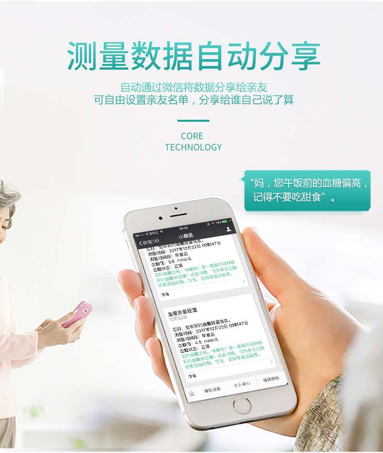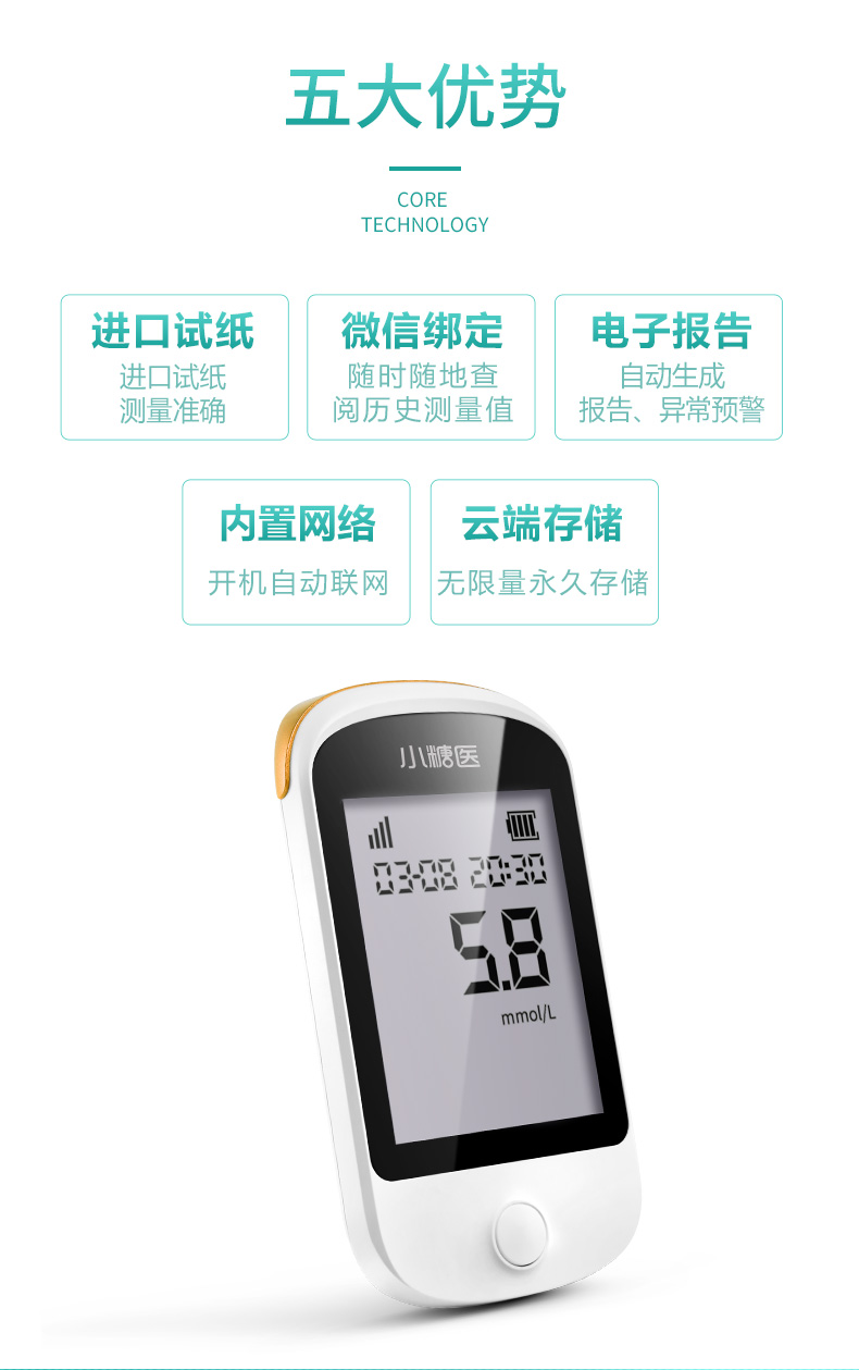 这款智能血糖仪,是院线合作款,精度高,且与普通款相比,多了自动联网,数据自动上传至云端,个人数据永不丢失。测量的血糖结果还能生成图表和报告,随时查看和分析。