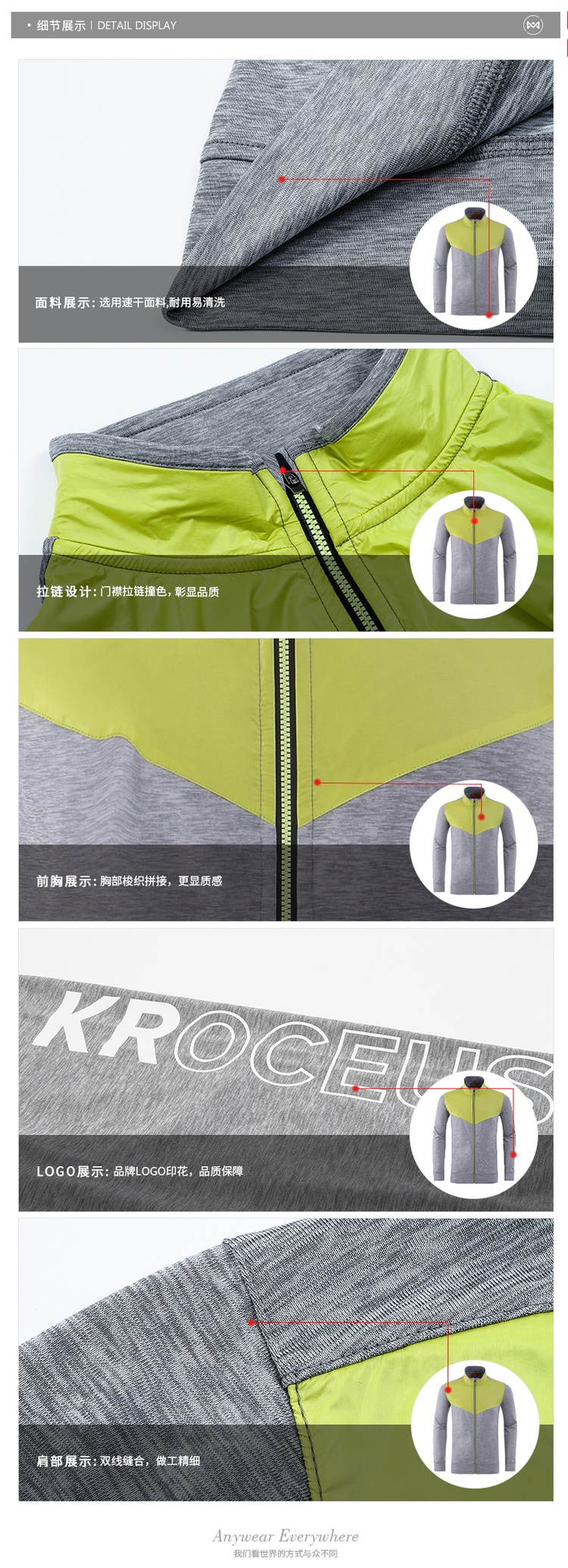 在款式方面,标准版型,因为面料带有弹力,稍微胖一些的人也能穿。胸前是梭织拼色设计,加上左袖子上大大的KROCESU的Logo,避免衣服太单调,增加了点休闲气息。