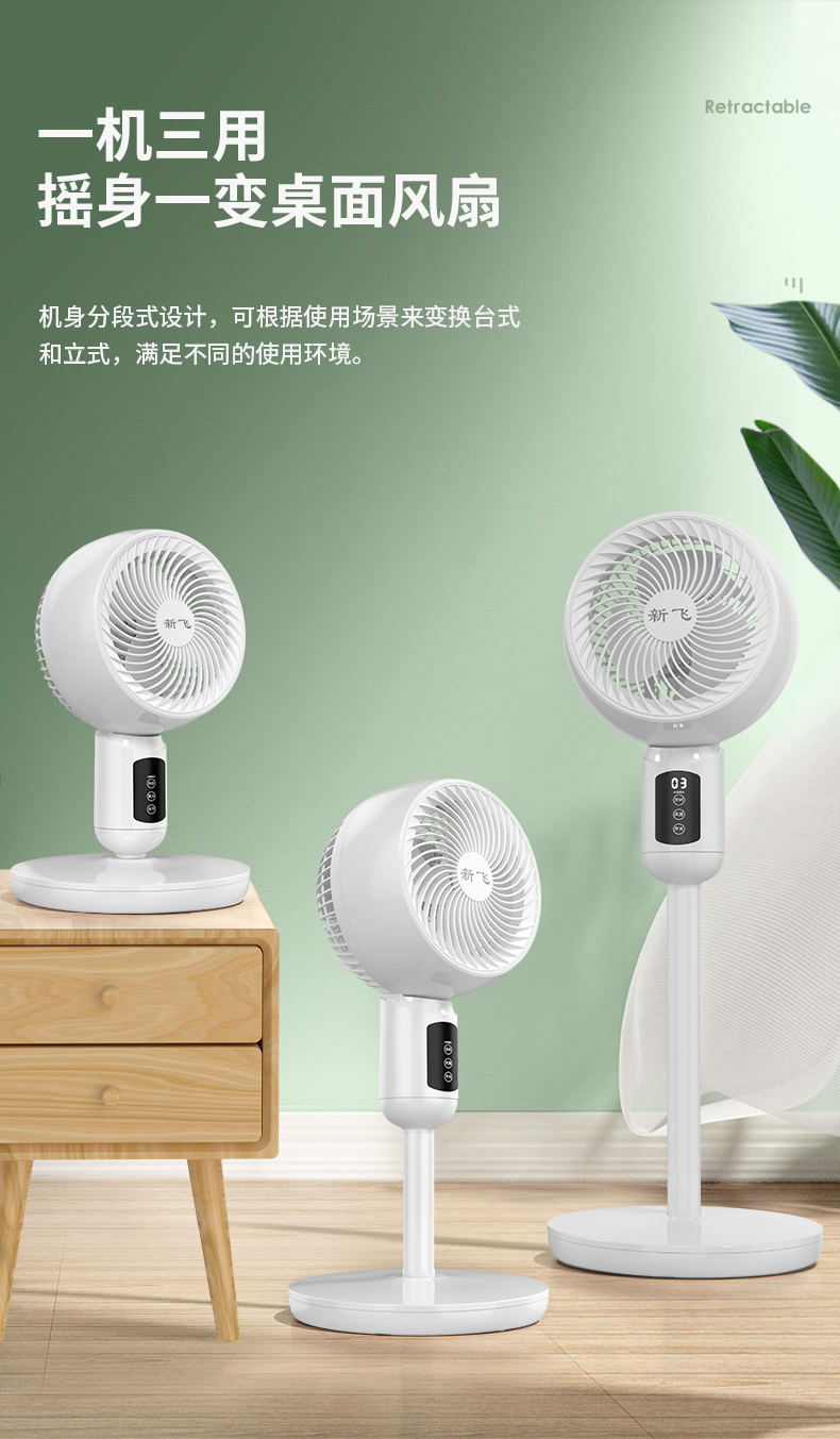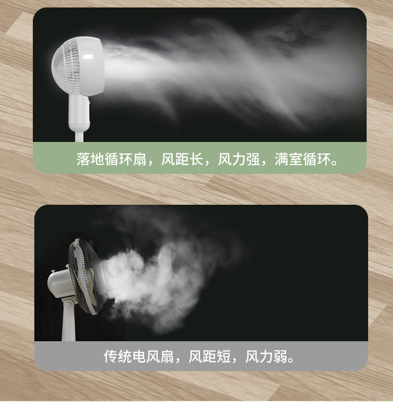 作用原理:普通风扇是单纯的利用叶片快速转动,使风扇面前的空气快速流动,使人体表面水分蒸发,吸收热量,从而让人体感到凉爽;空气循环扇主要作用是将室内空气形成对流循环,以合理的空气流向达到平衡温度的效果。