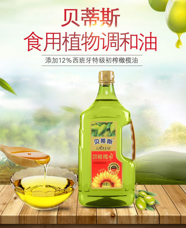 这款葵花橄榄油,,是一款食用植物调和油,由12%西班牙特级初榨橄榄油+88%进口葵花籽油调和而成,含大量的不饱和脂肪酸矿物质元素,还富含维生素A、B1、E等。油质色泽清亮,少油烟,使用健康。