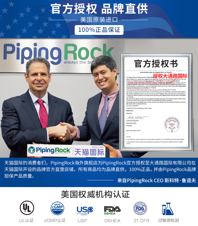 PipingRock是来自美国的保健品牌「官网地址」,和自然之宝、普丽普莱一样,都是美国最大的膳食营养补剂公司NBTY旗下的,只不过它在2015年才进入中国市场,名气还没打出去,既然是兄弟,那品质和效果也肯定不错。