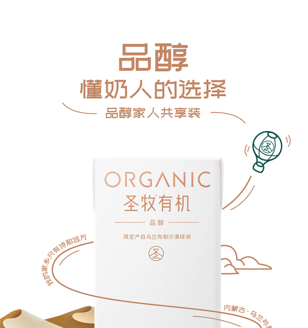 奶源严格限制在乌兰布和沙漠专属牧场,奶牛从选种到饲养再到挤奶都遵循有机产品规范,饲养、生产过程严禁使用农药化肥、激素、转基因产品等,一盒一码,扫码可追溯。