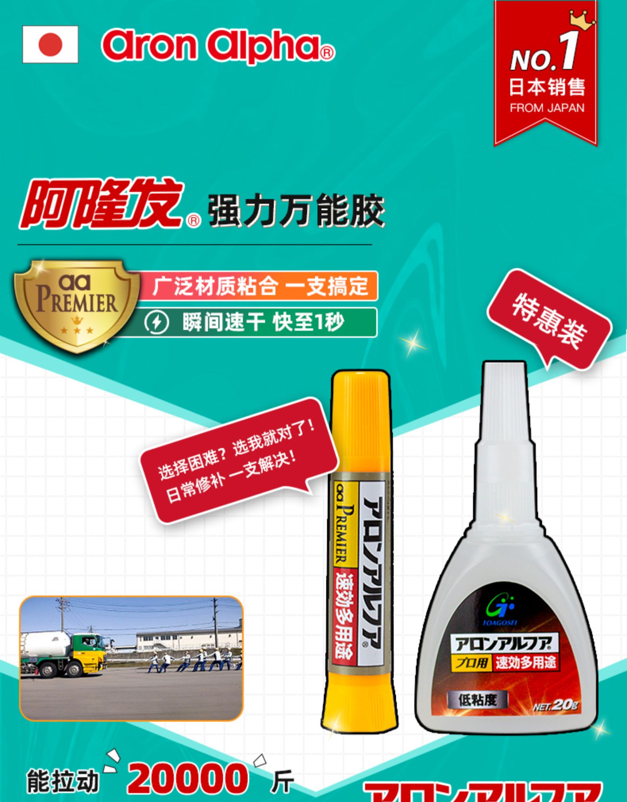 天猫aronalpha旗舰店17.9元,可领10元优惠券,实付7.9元到手,是正价31.8元的2.5折;日本销量第一的专业防水速干胶,5秒速干强力胶,防水防热不脱胶, 强大的黏合力 其独特性能很适合黏合细小面积,多功能用途,补鞋、粘接木头金属皮革陶瓷玻璃塑料都行,环保无刺激性气味。
