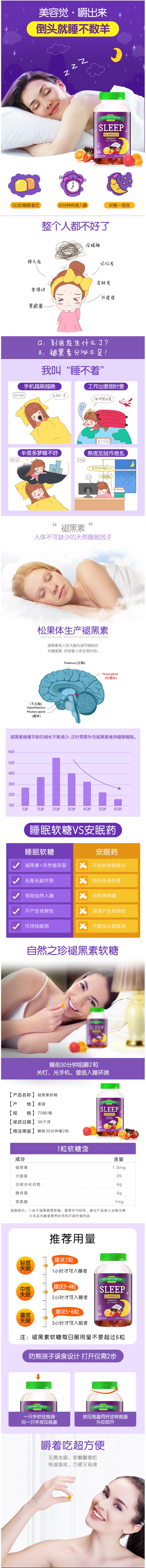 每粒软糖含褪黑素 1.5mg、卡路里 20、碳水化合物 4g、糖含量 4g、茶氨酸 1mg。无毒无副作用,不产生依赖性,Q弹软糖,酸甜好口感,产品已通过美国UL认证,安全可靠。