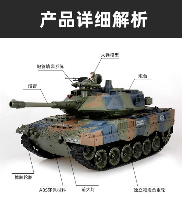 有中国99式50cm机身、德国豹2A6 45.5cm机身 2款可选,1:18完美复刻,炮台可320°旋转,炮管可上下30°瞄准,伸缩炮管,开炮仿真后坐力,模拟生效,加水还可启动水雾,模拟机动。三档速度,45°强劲爬坡,无惧地形限制,独立式悬挂轮,高速行驶时有效减震。水弹柔软轻弹,碰触即碎,使用安全,大人小孩都爱玩,军迷收藏必选。