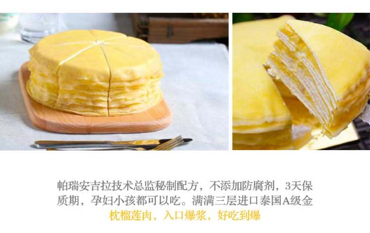 天猫帕瑞安吉拉烘焙旗舰店129元,可领70元优惠券,实付59元到手,现做现发,顺丰直达!蛋糕界的泥石流,爆浆榴莲千层,甜而不腻,绵滑有度,200g的榴莲果肉,0添加,每一口都是真材实料,口感细腻,一口俘获女神的挑剔胃口。