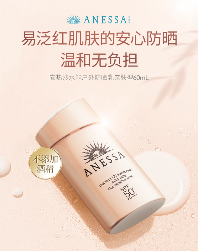 天猫ANESSA安热沙官方旗舰店228元,可领10元优惠券,实付218元到手,规格是60ml,专为敏感肌设计,不添加酒精、香料。