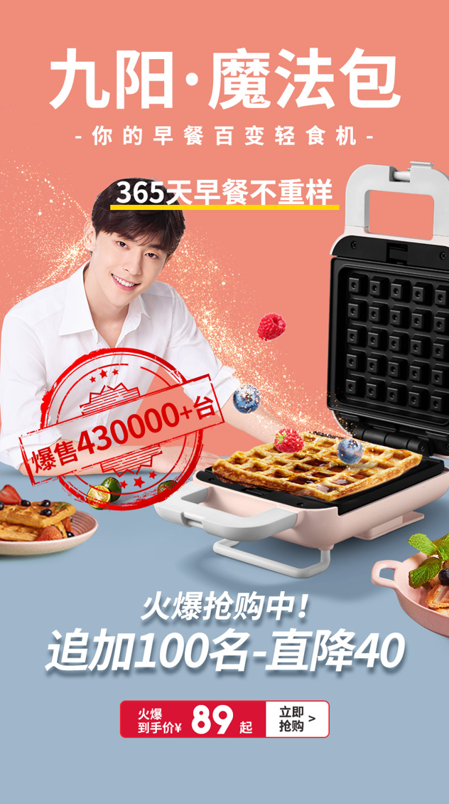 百种美味创意食谱。这款九阳 轻食料理机,高颜值小巧好用,可以做个三明治、华夫饼等,双面均匀加热,煎蛋、煎香肠也可以,仅需一开、一放、一合三步,即可享用美味。