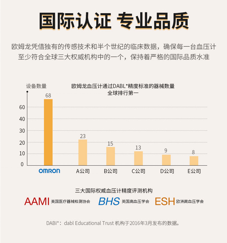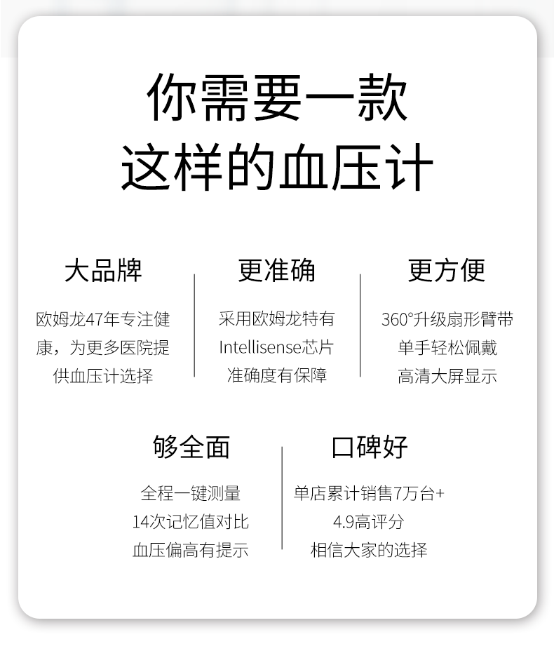 欧姆龙的血压计在全球市场占有率是排名第一的,测量准确,而且产品质量也很过关,称得上是家用血压计的顶尖制造商,我给家里买的就是这款,去医院的时候,大夫用的也是这款。