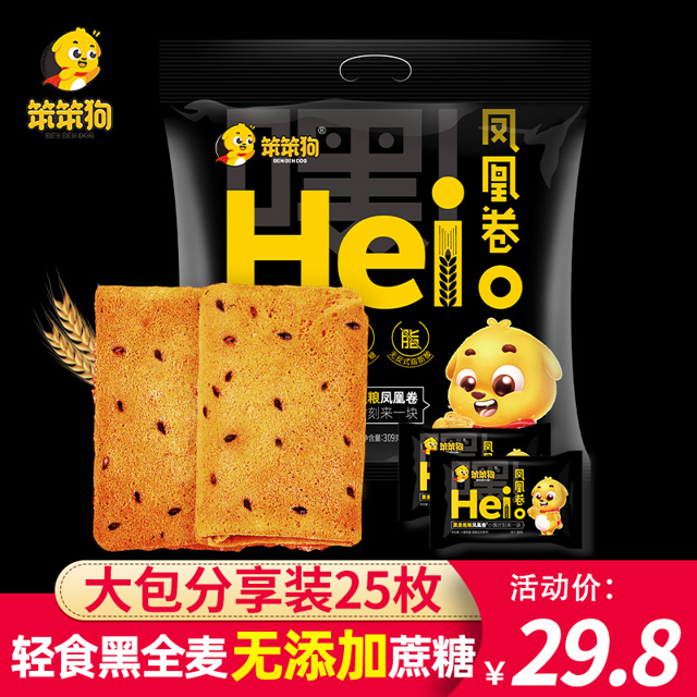 天猫笨笨狗旗舰店凤凰鸡蛋卷饼干(约25包)目前单件售价29.8元,2件原价59.6元,现有店铺活动满59.6减29.8元,叠加10元优惠券 ,实付19.8元包邮 ,平均单件到手价低至9.9元。
