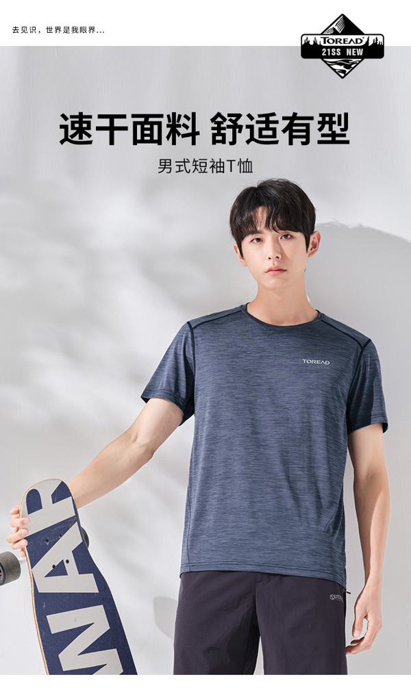 这款探路者男运动速干透气T恤是2021年的新款,使用100%聚酯面料,搭配TIEF DRY干爽科技,吸湿排汗,速干透气,能将汗水直接泵吸到衣服表层使其快速排出,贴肤面干爽舒适,出汗不粘腻。