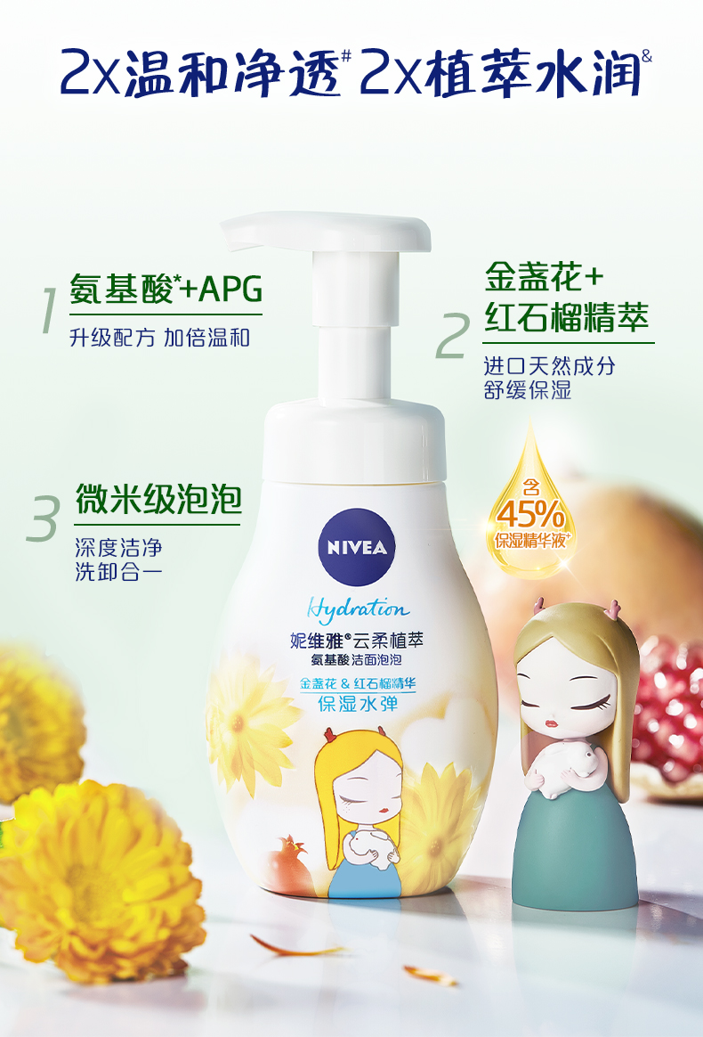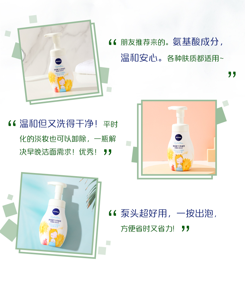 这款妮维雅的氨基酸洗面奶,采用氨基酸配方温和洁面、鲜活水嫩、不紧绷,不假滑,清爽透气,添加植萃精华金盏花+红石榴成分,使肌肤温和舒缓保湿水弹。