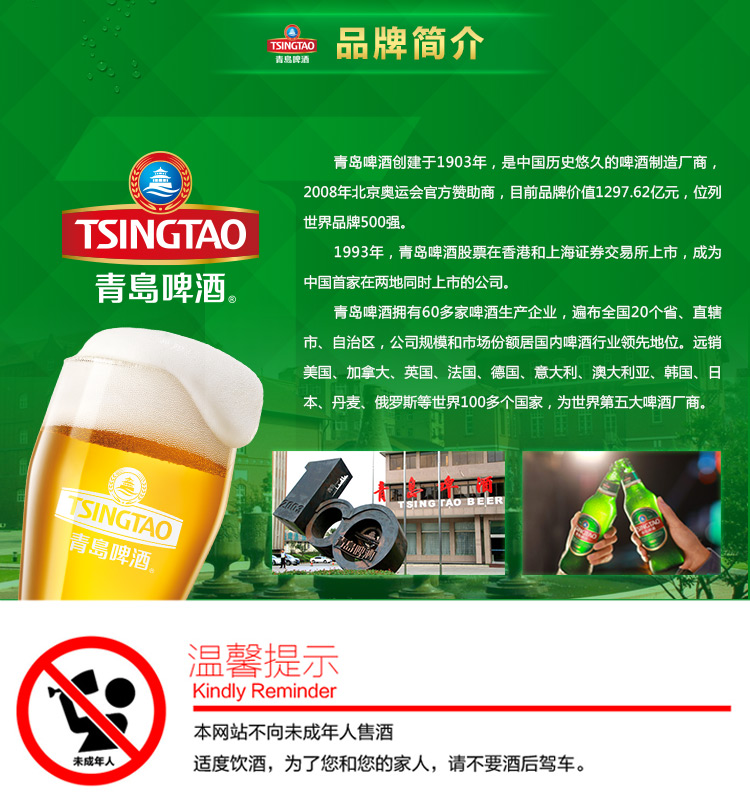 青岛啤酒股份有限公司(以下简称“青岛啤酒”)的前身是1903年8月由德国商人和英国商人合资在青岛创建的日耳曼啤酒公司青岛股份公司。1993年,青岛啤酒成为中国首家,在在香港交易所和上海证券交易所两地同时上市的公司。2008年北京奥运会官方赞助商,跻身世界品牌500强。
