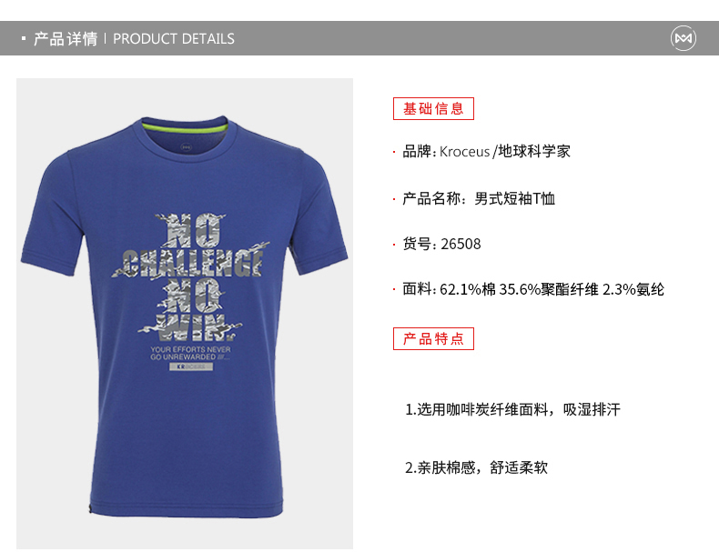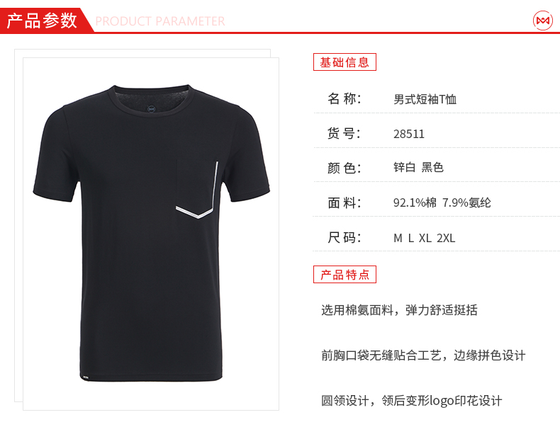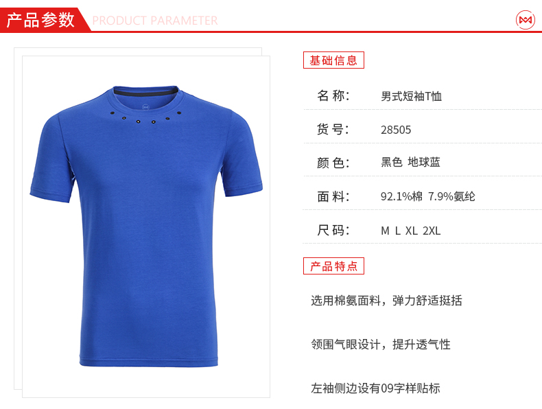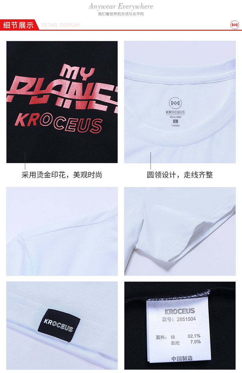 采用棉氨汗布面料(92.1%棉+7.9%氨纶弹性纤维),摸起来的手感柔软,亲肤性好,吸湿有弹性,上身不紧绷。