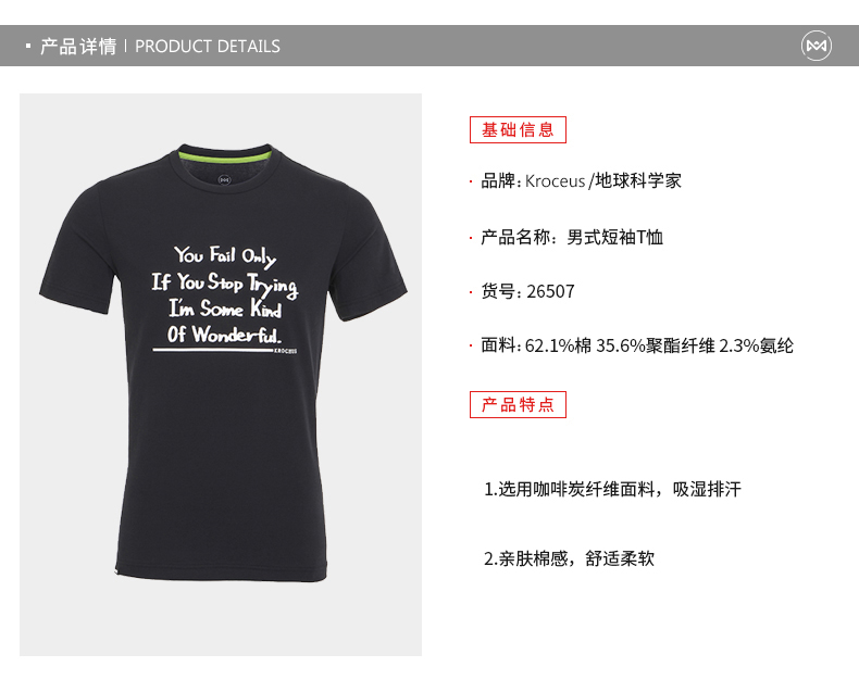 天猫kroceus旗舰店89元,可领20元优惠券,实付69元到手,是正价290元的2.4折。有棉氨混纺、咖啡碳纤维、速干这三种面料可选。