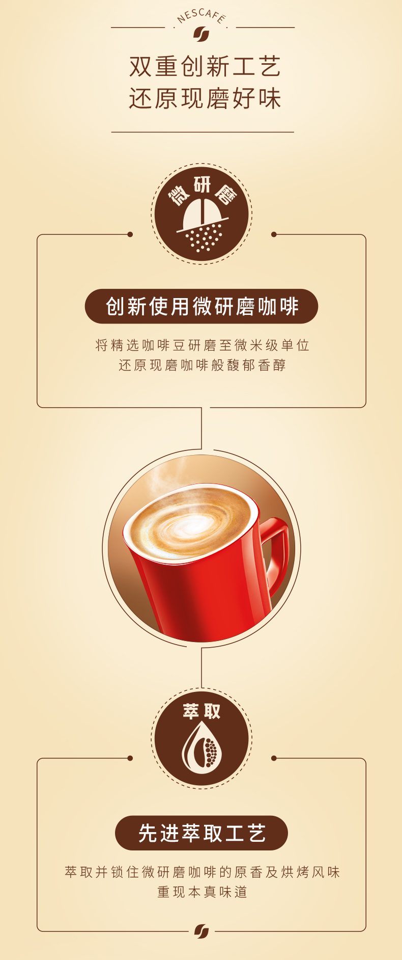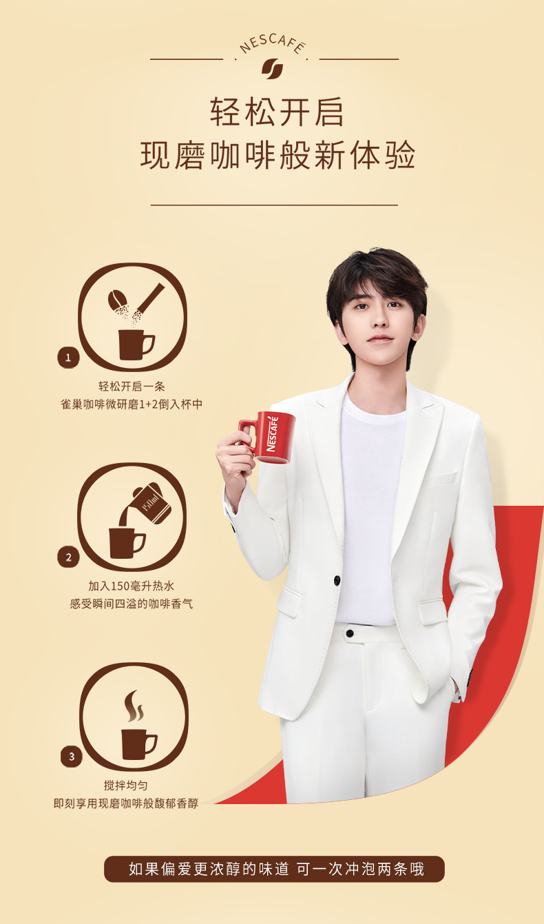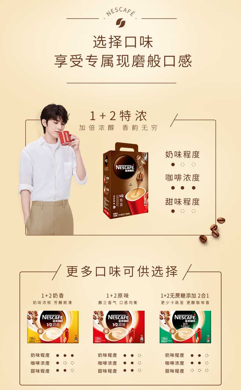 这款雀巢 1+2微研磨三合一特浓速溶咖啡,是雀巢旗下销量最高的一款速溶咖啡,知名度极高。精选进口咖啡豆,先用慢火烘焙,然后研磨至微米级单位,还原现磨咖啡般馥郁香醇;最后使用先进的萃取工艺,牢牢锁住微研磨咖啡的原香及烘烤风味。