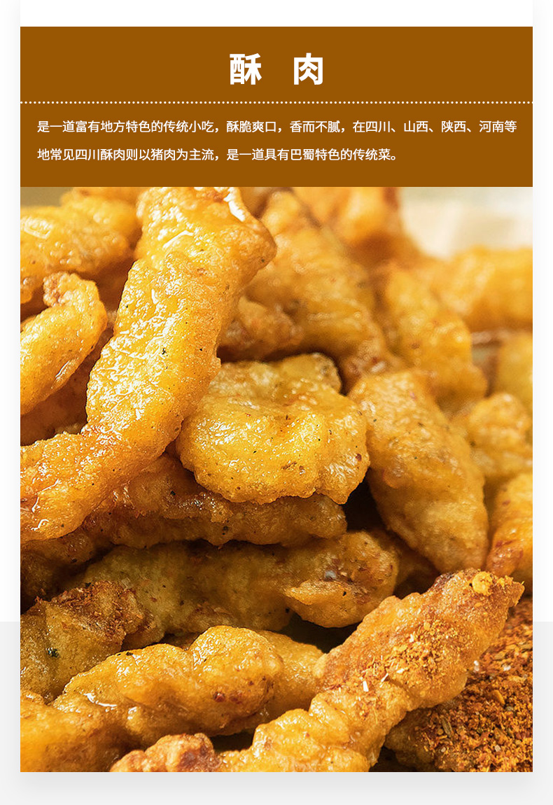 吴昕代言,齐汇农家椒香加热即食大份小酥肉,椒盐酥香,根根分明,精选精选上等猪后腿肉切条,惊喜面粉包裹炸制金黄,外酥里内,口感真心妙不可言,大人孩子都爱吃!