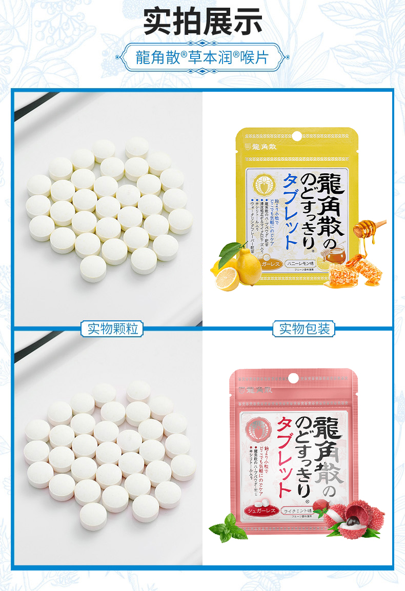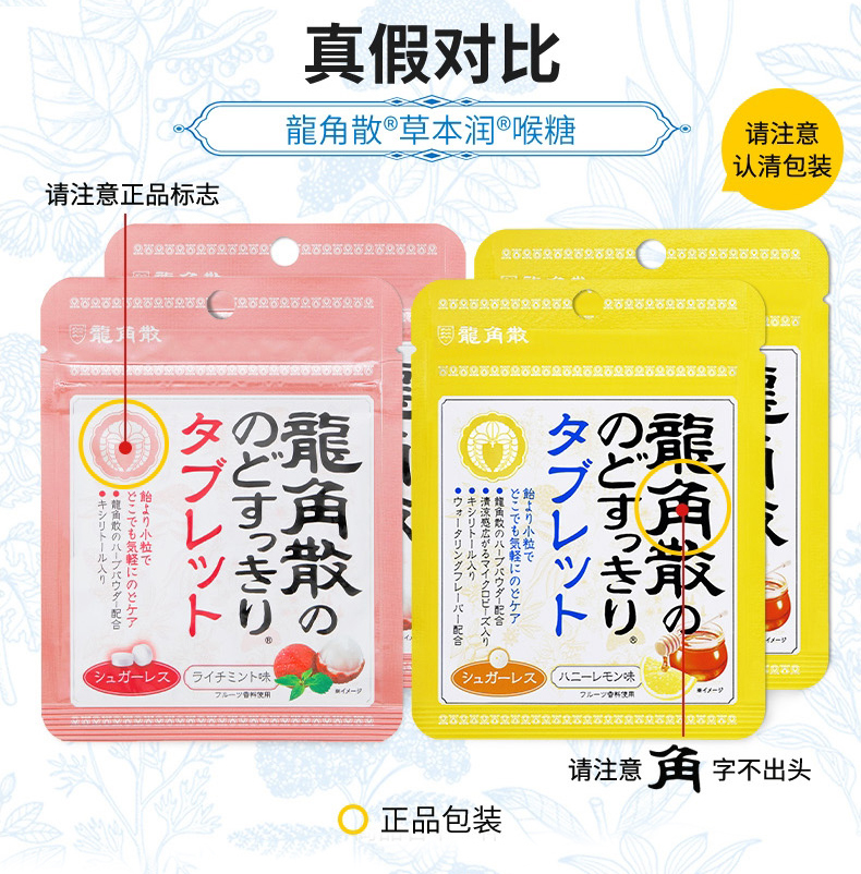 特别的龙角散生药配合,100微米细的龙角散粉末包覆于润喉糖的中心,瞬间滋润不适喉咙,对于除痰止咳,清肺、痰多,咽喉肿痛、咽喉炎症有一定的功效,特别是换季的时候,早晚温差大,容易引起长久的干咳和痰咳,家中常备药品,3岁以上宝宝都可以吃。