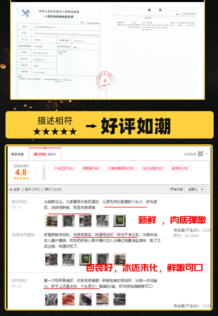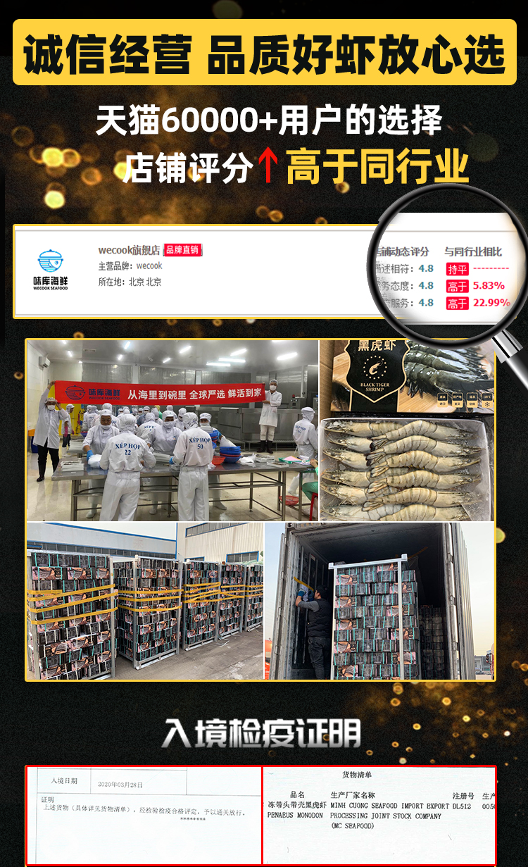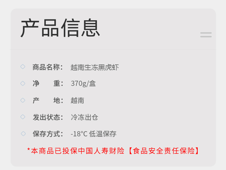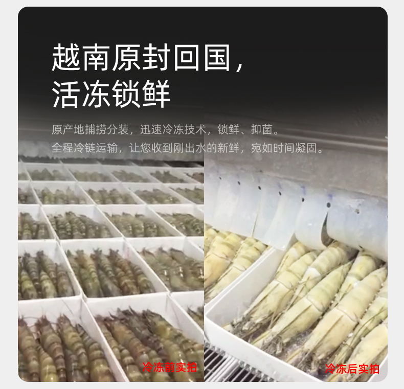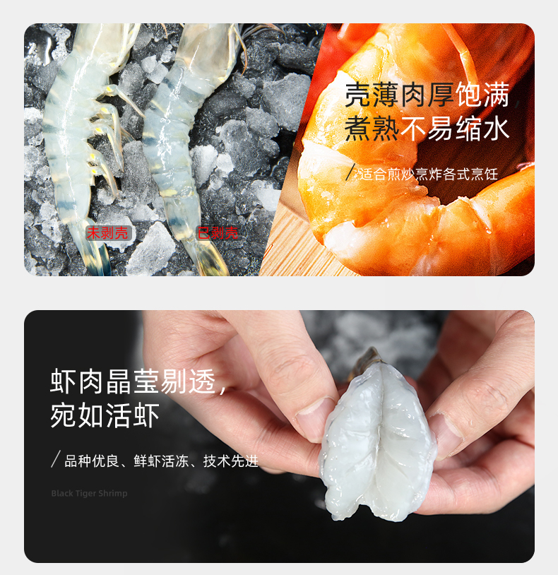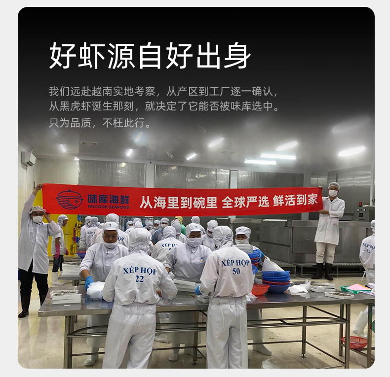 这款味库越南黑虎虾,纯净海域限定海捕,壳薄肉厚,个头均匀,个大饱满,壳薄虾肥,肉质紧实,鲜嫩滑爽,现捕现捞,活虾速冻。