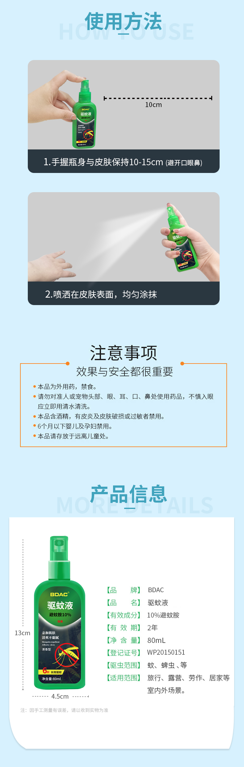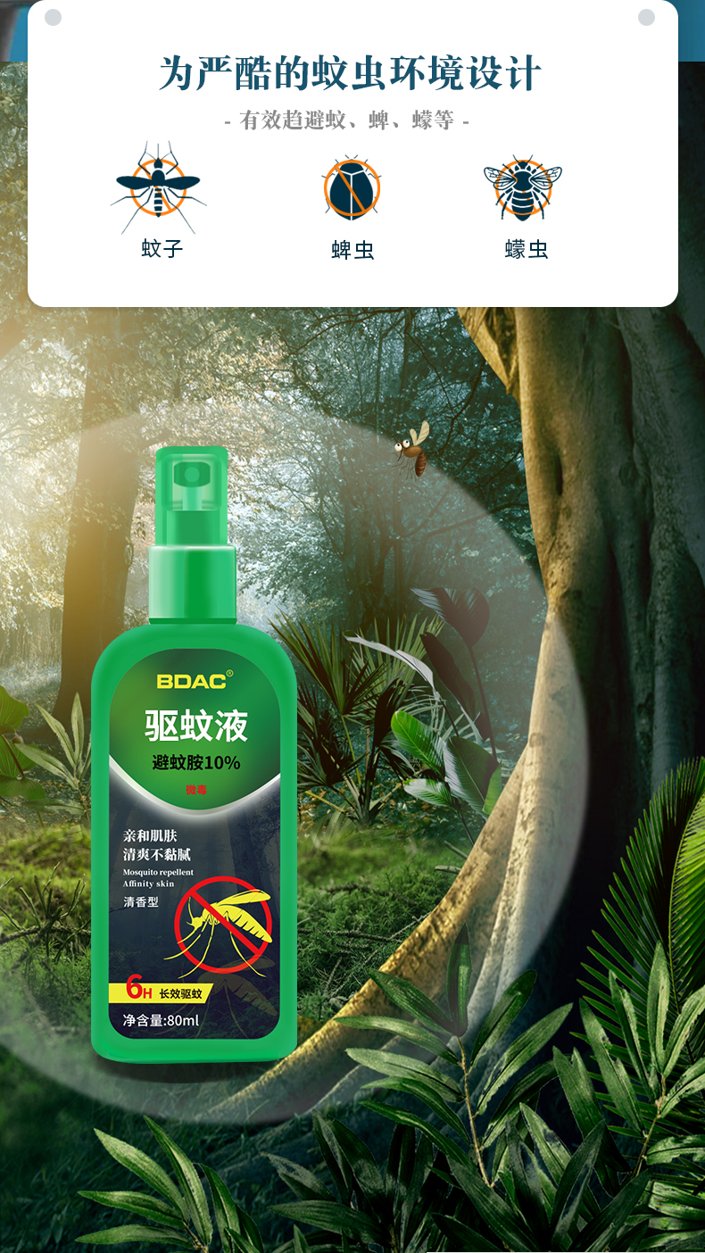 天猫bdac旗舰店16.9元,可领10元优惠券,实付6.9元到手,单瓶装此价,规格为80ml,含10%的避蚊胺,疗效持久清香,无刺激性,可以提供6小时以上的强效防护。