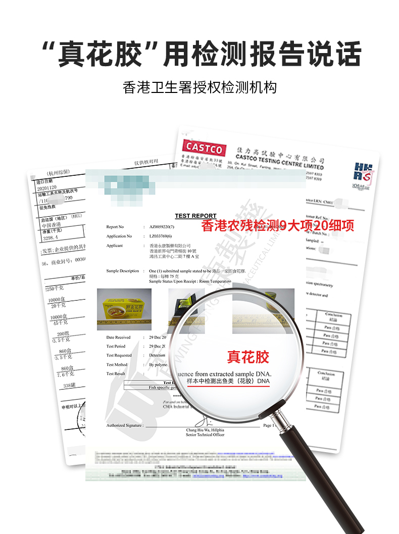 这款港品一家 即食红枣藜麦鱼胶,香港生产,选用深海野生鱼胶为原料,搭配藜麦、红枣、枸杞等补材制成,所有原料全面通过香港卫生署的安全检测,保证质量安全靠谱。