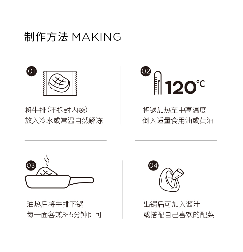 西冷牛排:主要是由上腰部的脊肉构成,基本上取自牛背脊一带的牛肉,肉的边沿稍微带一圈白色的肉筋,有韧性且嚼劲十足,可煎制7分熟甚至全熟。