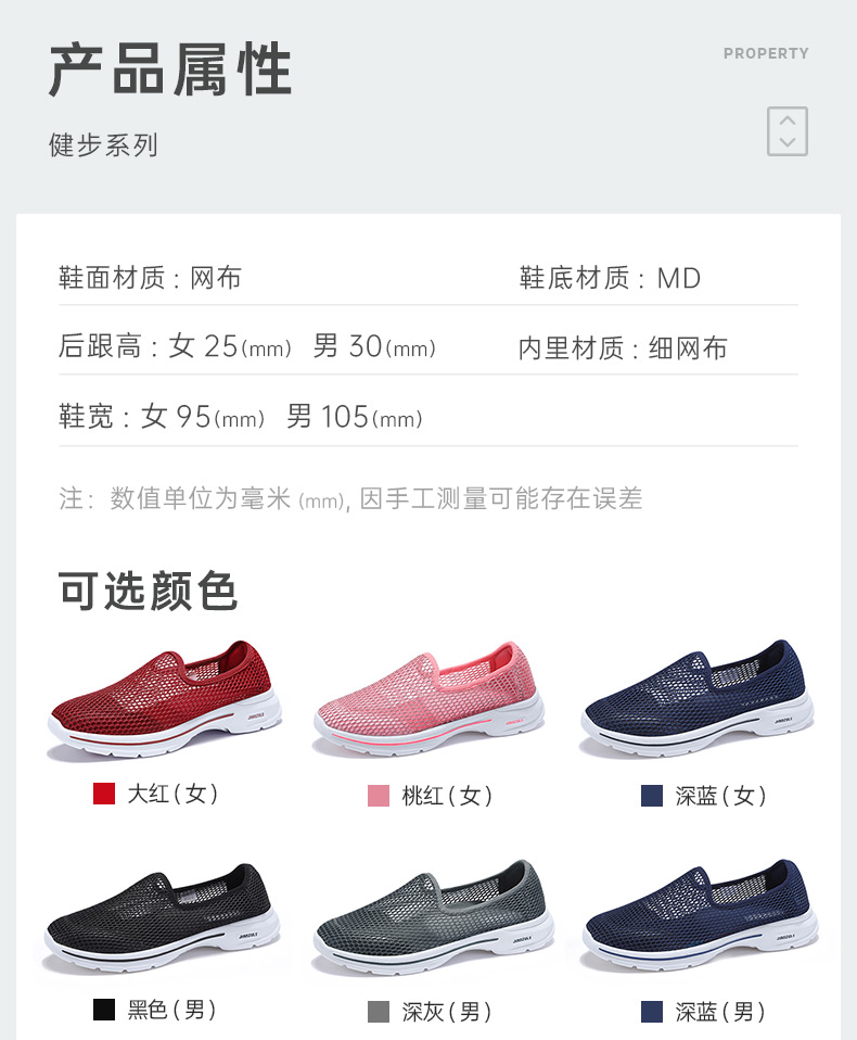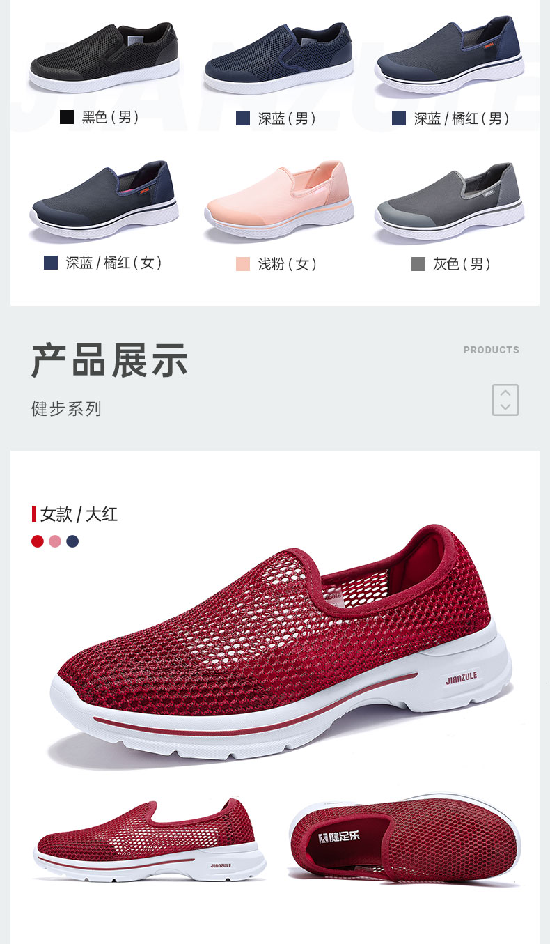 不同款样式、材质不同,据需选择,适合春夏季的薄鞋面,MD缓震中底,舒适运动耐磨抗震,缓震性好,专为中老年人设计,不挤脚,久穿不累脚,适合日常穿着。