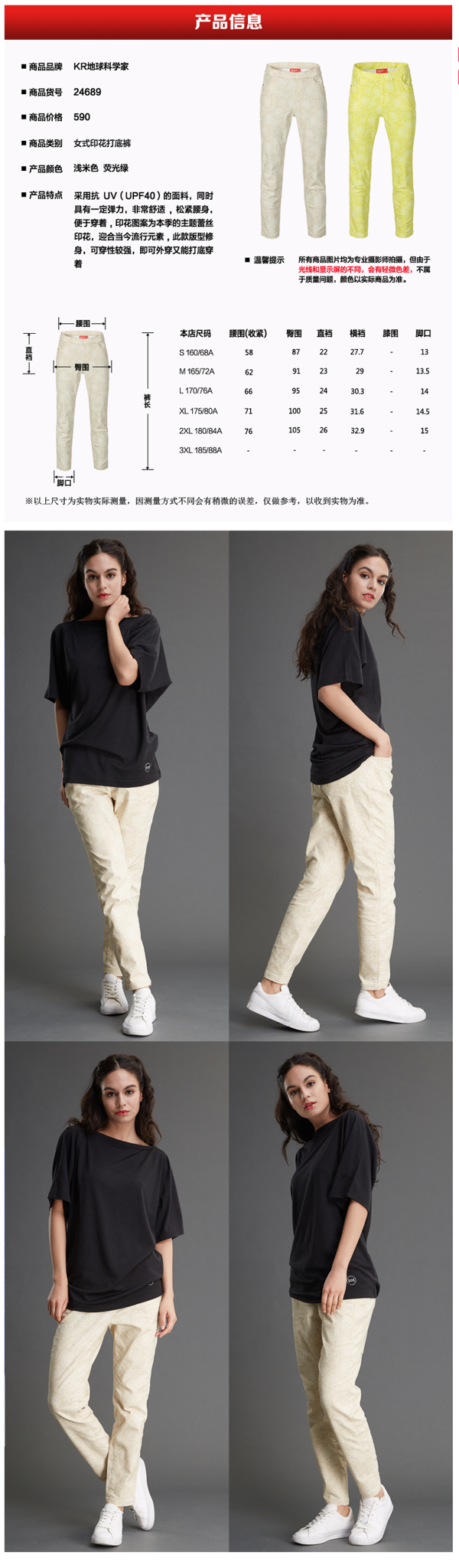 在裤型上,修身版型,直筒裤脚,3D立体剪裁,弹力松紧裤腰,不挑身材。