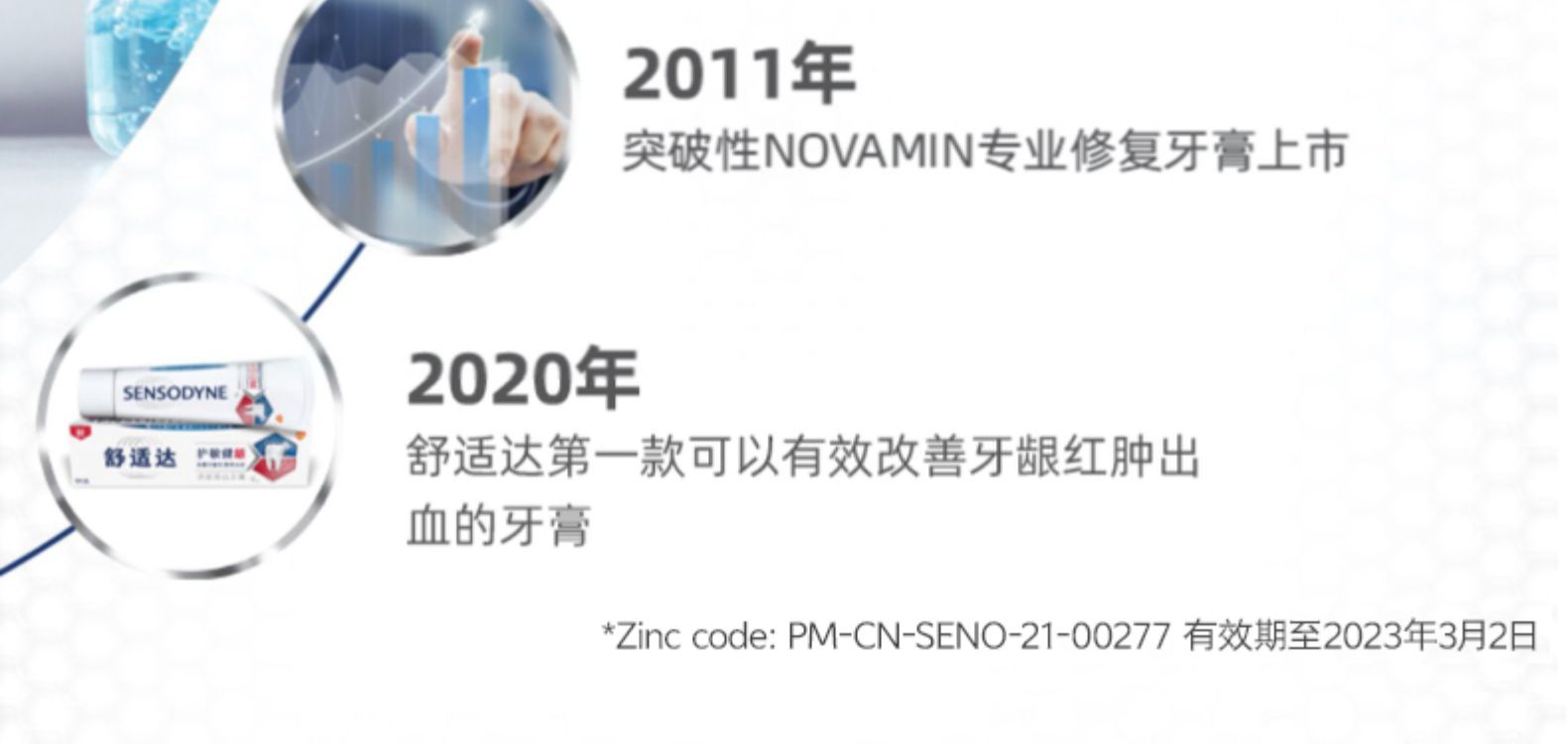 葛兰素史克旗下品牌SENSODYNE舒适达的牙膏有口皆碑,是专业的抗敏感牙膏品牌,受到很多牙医的推崇。这款舒适达专业修复牙膏,采用NovaMin®专利科技,遇到唾液能释放出钙和磷酸盐,在牙本质上形成修复层,有益于修复敏感牙齿受损部位,帮助预防牙齿敏感疼痛 。