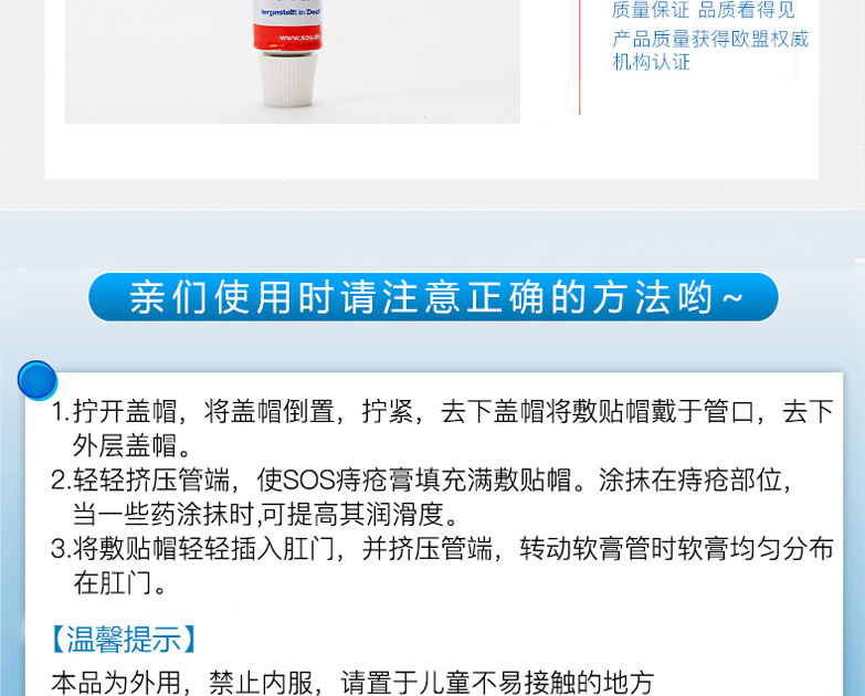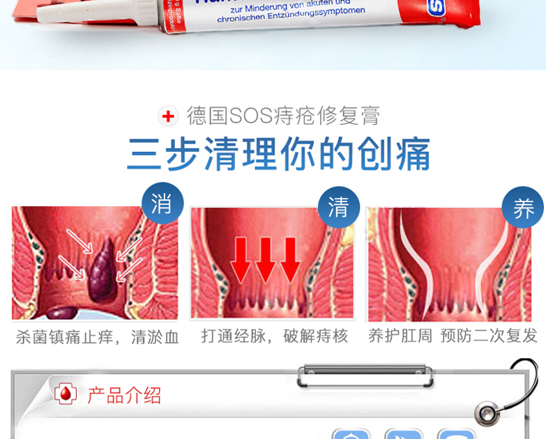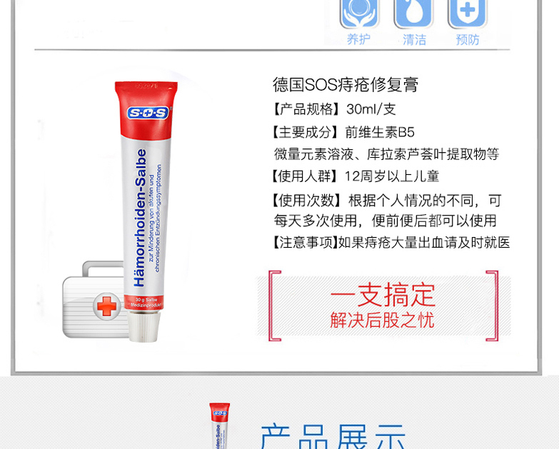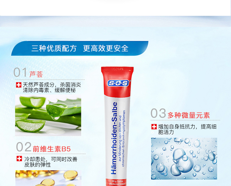 这款痔疮膏,德国原产,针对大便出血、大便疼痛、直肠坠痛、肿物脱出、瘙痒等情况有良好的效果。含天然芦荟成分,能杀菌消炎,清除内毒素,缓解痔疮疼痛和瘙痒,清洁和舒缓,长期使用预防二次复发。