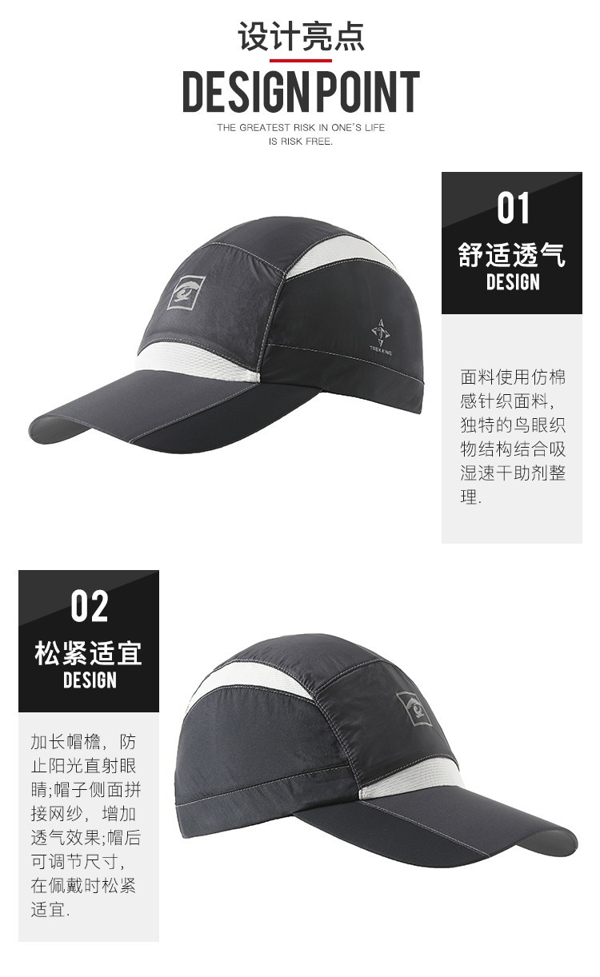 这款探路者鸭舌帽,主体使用100%锦纶的速干面料,耐磨损透气性好,同时拥有接近纯棉的轻柔手感和舒适度,还有两道独特的鸟眼结构细密网布,更增加透气性。