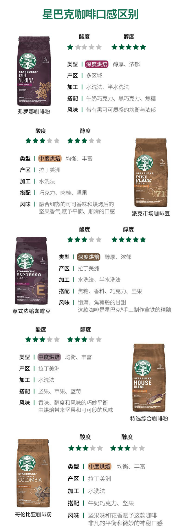 这款星巴克意式浓缩咖啡粉,美国原装进口,采用拉丁美洲的优质咖啡豆,搭配牛奶巧克力、肉桂、坚果、焦糖等辅料,经过长时间低温烘焙而成,充分释放出咖啡独有的香味,口感浓郁,加工是用水洗法或半水洗法。