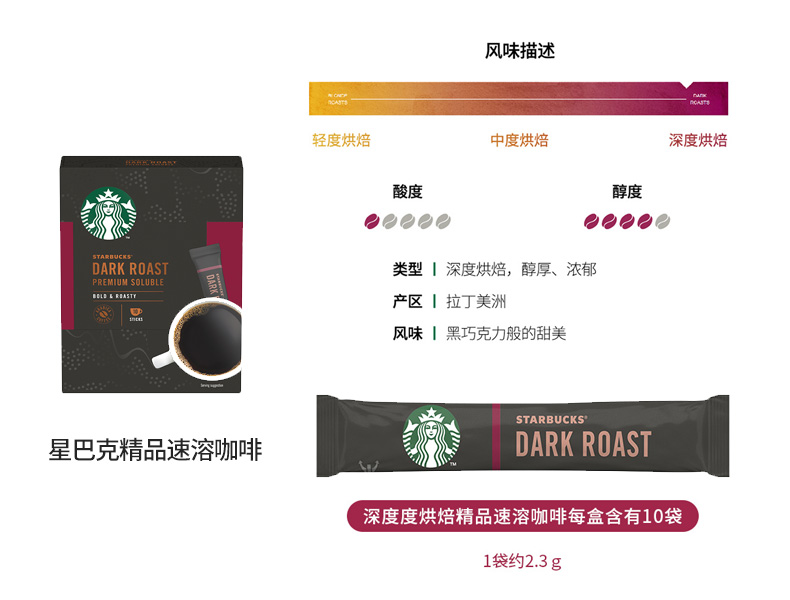 深度烘焙,口感醇厚风味浓郁。