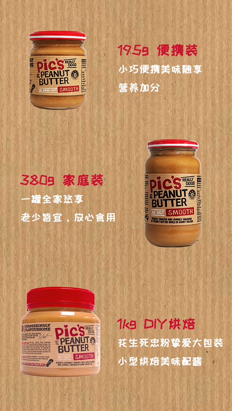 其实在国外,早餐有烤面包配花生酱的习惯,PICS不油不腻,吃着健康,这也是PICS畅销全球的重要原因之一。