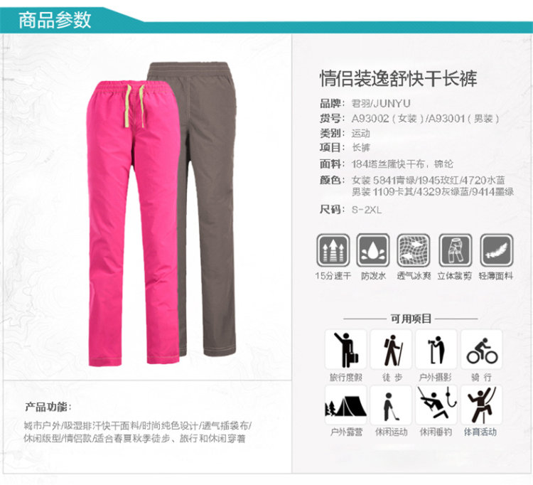 这款君羽速干裤是19年夏季款,主打超薄的尼龙塔丝隆面料,轻薄透气耐磨,是一款户外和城市日常都能穿的功能性休闲裤。