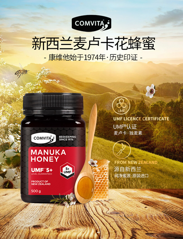 康维他Comvita是来自新西兰的天然产品品牌,旗下的Manuka蜂蜜常见于新西兰本地超市,可以说是国内能买到的靠谱蜂蜜之一。产自新西兰的蜂蜜中含有Manuka麦卢卡树中的独有活性物质,能够辅助治疗和预防,以强健消化系统,护理肌胃及治理伤口功效显著而闻名世界各地。